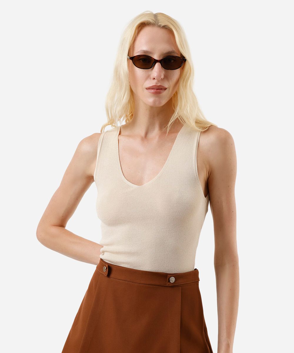 regata feminina de tricot decote v bege