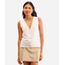 regata feminina de tricot decote v com botões bege