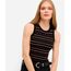 Regata feminina confeccionada em tricot leve de viscose e poliamida com padronagem listrada. A peça tem modelagem reta e caimento ajustado ao corpo. O modelo tem decote redondo e alças largas. Detalhe de acabamento canelado na barra.