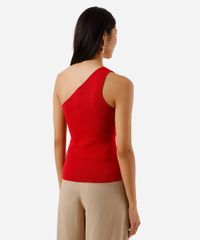 regata feminina de tricot ombro único canelada vermelha