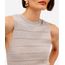 Regata feminina confeccionada em tricot leve com viscose, textura ondulada e fios de lurex que acrescentam brilhos. A peça tem modelagem reta e caimento solto ao corpo. O modelo tem decote redondo e cavas amplas.