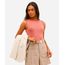 Regata feminina confeccionada em malha de viscose com textura canelada. A peça tem modelagem reta e caimento levemente solto ao corpo. O modelo tem decote redondo e alças largas com botões decorativos aplicados nos ombros. Detalhe de acabamento pespontado nas cavas e barra.