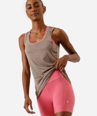 • Decote redondo frontal e costas com design nadador, ideal para a prática esportiva.