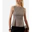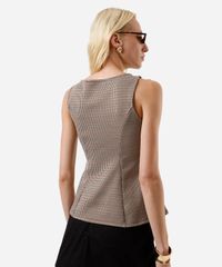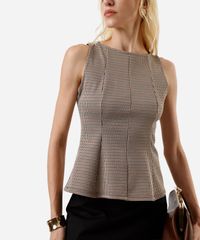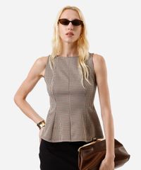 regata feminina peplum com recortes xadrez marrom