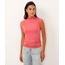 Regata confeccionada em malha de viscose com toque macio. A peça possui modelagem e caimento reto, gola alta, alças largas e sem mangas, detalhe de franzido nas laterais e acabamento pespontado.