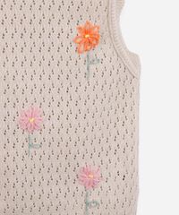 Esta regata infantil é a escolha perfeita para compor looks cheios de charme e delicadeza. Confeccionada em tricô macio, a peça oferece um toque suave e confortável para a pele da criança, ideal para os passeios em família. Com um design atemporal, esta blusa infantil combina a leveza do tricô com o encanto dos bordados florais, garantindo um visual adorável e versátil para diversas ocasiões.