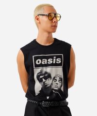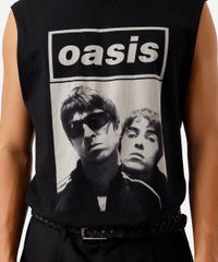 Regata machão masculina confeccionada em malha macia de algodão com estampa localizada da banda Oasis na parte frontal. A peça tem a modelagem reta e o caimento é confortavelmente solto ao corpo. O modelo tem gola redonda em tecido com textura canelada e alças largas. Detalhe de acabamento pespontado na barra e cavas.