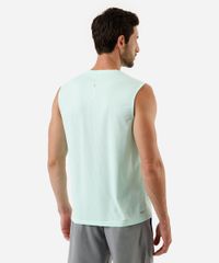 Regata machão masculina confeccionada em tecido sintético de alta performance e absorção com toque levemente texturizado. Possui modelagem reta, gola redonda, ombros com detalhes reflexivos, design sem mangas, cavas amplas, acabamento pespontado.