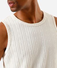 regata masculina de jacquard com cavas amplas off white
