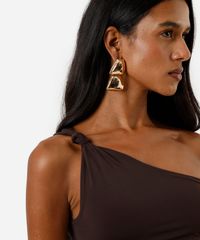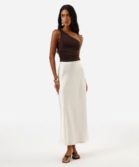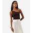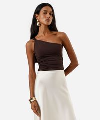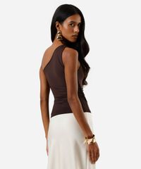 regata ombro único feminina franzida com nó na alça marrom
