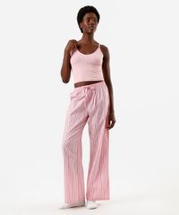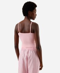 regata pijama feminino alças finas listra relevo rosa