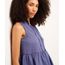 Regata feminina confeccionada em malha texturizada. A peça tem modelagem reta e caimento solto ao corpo, com recorte na parte inferior que forma franzidos e acrescenta volume. O modelo tem decote em v com babado aplicado no contorno e fechamento frontal por botões e tira fina para amarração. Detalhe de acabamento em viés na parte interna das cavas.