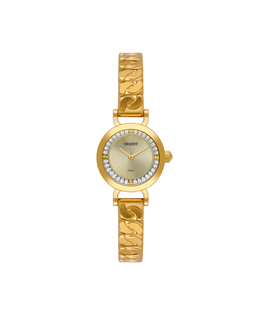 Relógio feminino Orient analógico fgss0217 c1kx dourado. Desenvolvido em aço com pulseira dourada e visor dourado. Possui resistência à agua de 3atm e mecanismo analógico.