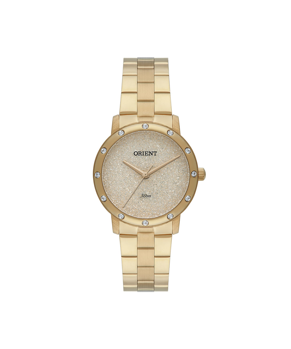 Relógio feminino Orient analógico fgss0248 c1kx dourado. Desenvolvido em aço com pulseira dourada e visor dourado. Possui resistência à agua de 5atm e mecanismo analógico.