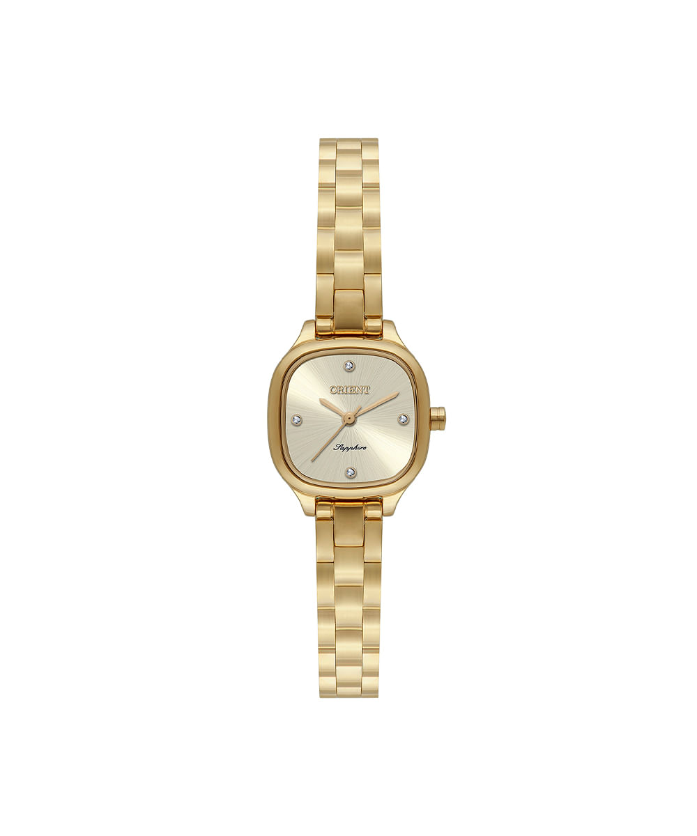 Relógio feminino Orient analógico lgss0071 c1kx dourado. Desenvolvido em aço com pulseira dourada, visor dourado e caixa aço. Possui resistência à água 3atm e mecanismo analógico.