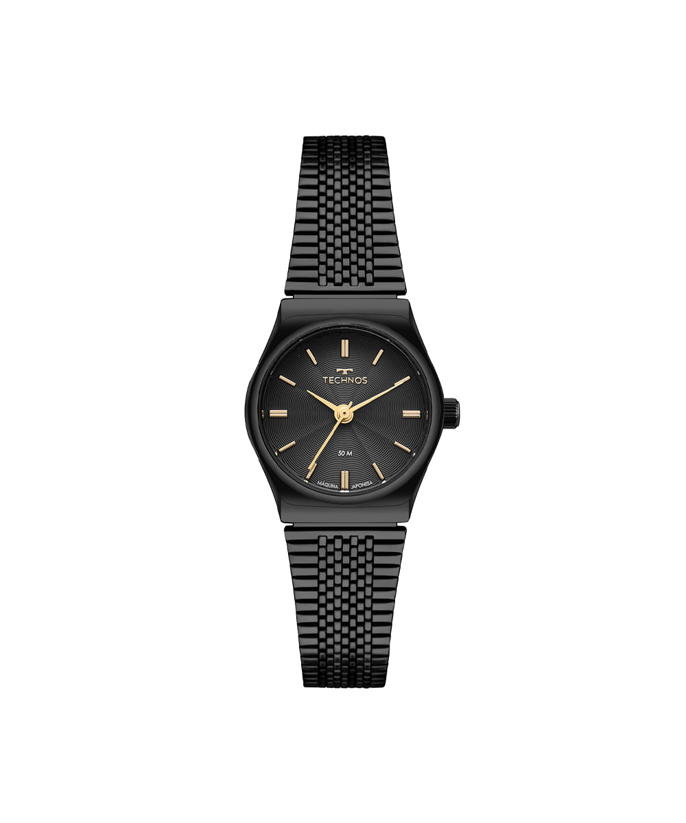 relógio feminino Technos analógico 2035ndg 1p preto. Desenvolvido em aço com pulseira preta, visor preto e caixa metal. Possui resistência à água 5atm e mecanismo analógico.