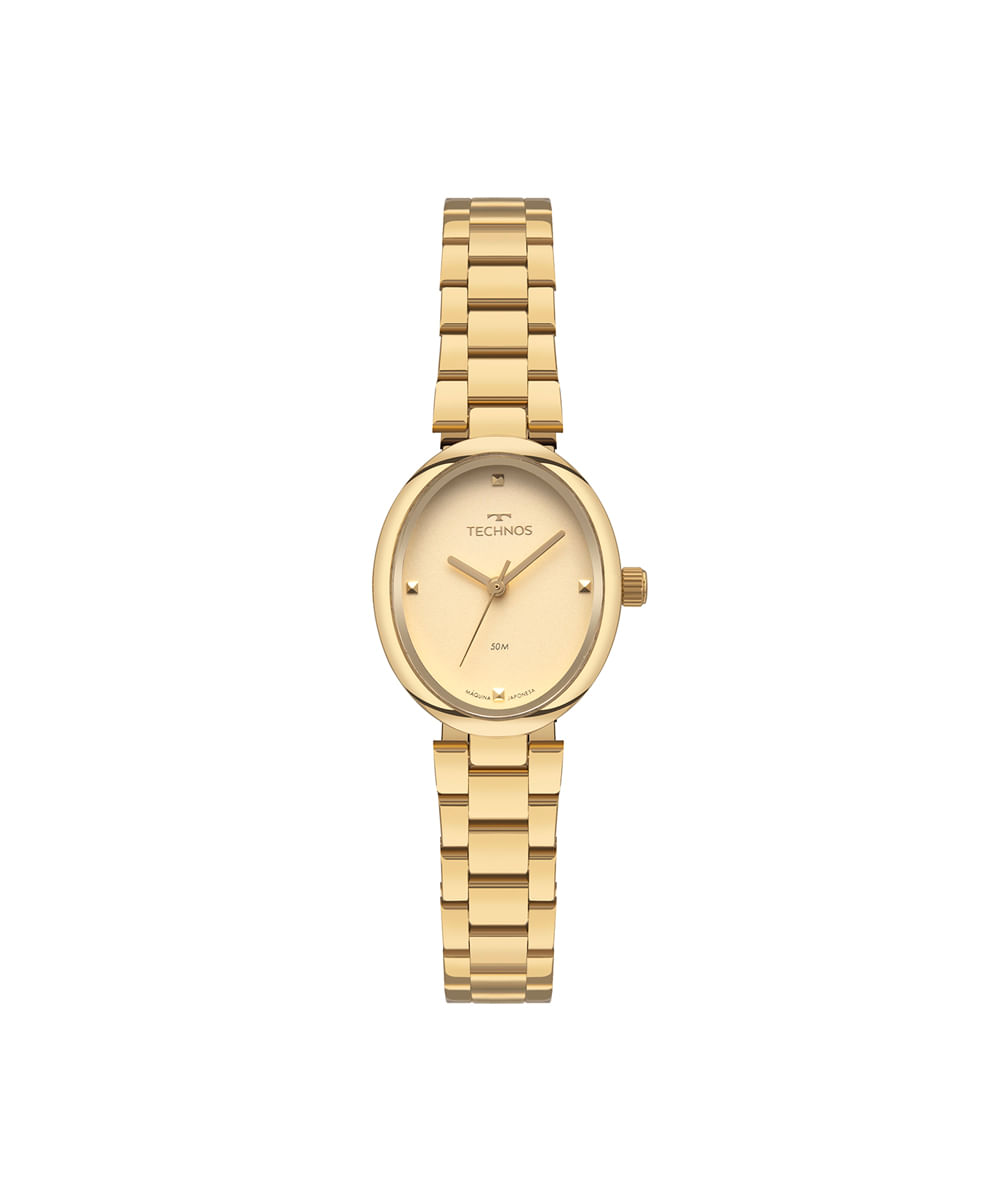 Relógio feminino Technos analógico 2035ned 1x dourado. Desenvolvido em aço com pulseira dourada, visor dourado e caixa metal. Possui resistência à água 5atm e mecanismo analógico.