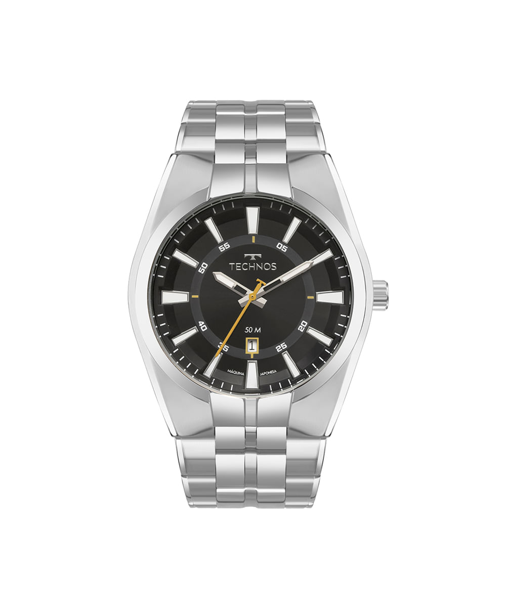 Relógio masculino Technos analógico calendário 2115txi 1p prateado. Desenvolvido em aço com pulseira prateada, visor preto e caixa metal. Possui resistência à água 5atm e mecanismo analógico calendário.