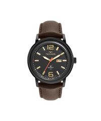 Relógio masculino Technos analógico calendário 2115txu 0x preto. Desenvolvido em couro com pulseira marrom, visor preto e caixa aço. Possui resistência à água de 5atm e mecanismo analógico calendário.