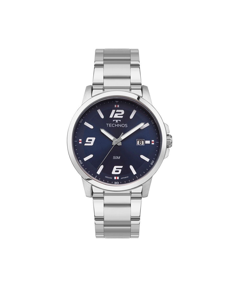 Economia de R$ 60,00Relógio masculino Technos analógico calendário 2315lav 1a prateado. Desenvolvido em aço com pulseira prateada, visor azul e caixa aço. Possui resistência à água de 5atm e mecanismo analógico calendário.