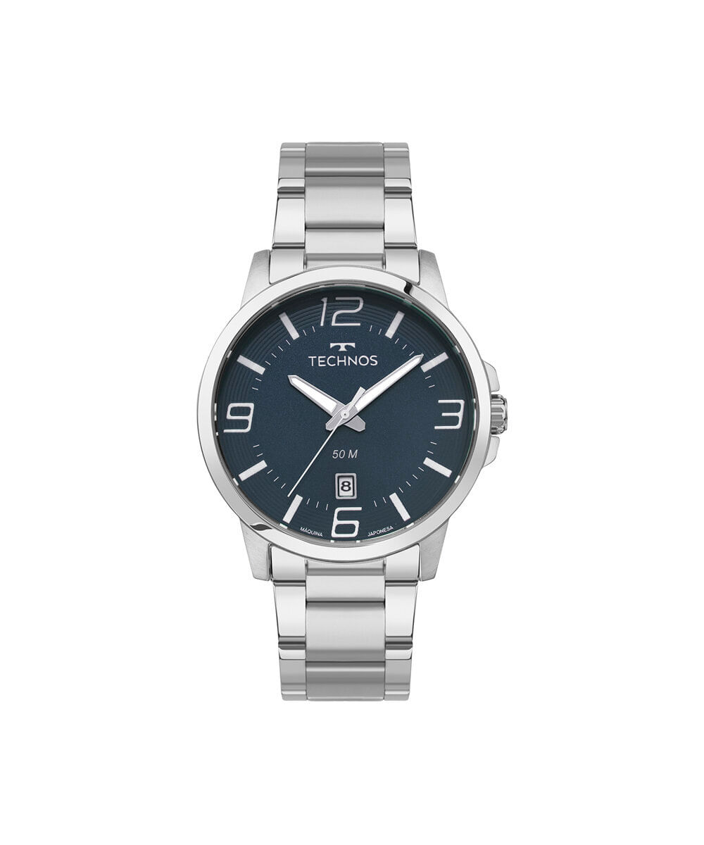 Relógio masculino Technos analógico calendário 2315lba 1a prateado. Desenvolvido em aço com pulseira prateada, visor azul e caixa aço. Possui resistência à água de 5atm e mecanismo analógico calendário.
