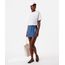 Saia curta feminina confeccionada em jeans com bordado floral. A peça tem a modelagem evasê, com caimento confortavelmente solto ao corpo. O modelo tem cintura alta, cós com passantes para cinto e fechamento por botão e zíper. Possui três bolsos na parte frontal, dois aplicados na parte posterior e acabamento pespontado nas barras.