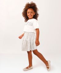 Prepare-se para ver os olhinhos brilhando com esta saia infantil cheia de estilo. Perfeita para festas, passeios e momentos especiais, esta peça une o encanto do acabamento metalizado com o conforto que as pequenas precisam para brincar à vontade. Seu caimento soltinho e tecido leve garantem liberdade de movimento para todas as aventuras.