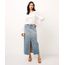 Para um visual despojado no dia a dia, combine esta saia longa jeans com uma camiseta básica, um top cropped e tênis. Se a ocasião pede um look mais arrumado, aposte em uma camisa ou blusa de tecido fluido e sandálias de salto. A peça é uma ótima base para explorar diferentes estilos e acessórios.