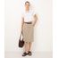 Para um visual de trabalho sofisticado, combine a saia midi com uma camisa de botão e scarpin. Se a ideia é um look mais descontraído e moderno, aposte em uma camiseta básica ou um top cropped com sandálias flatform ou tênis. A versatilidade desta saia permite transitar facilmente entre diferentes ambientes e ocasiões.