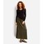 Saia longa feminina confeccionada em tecido plano texturizado. A peça tem modelagem evasê com caimento solto ao corpo. O modelo tem cintura alta, cós com elástico embutido e cordão para ajuste. Possui dois bolsos faca na parte frontal e dois aplicados na parte posterior. Detalhe de acabamento pespontado na barra.