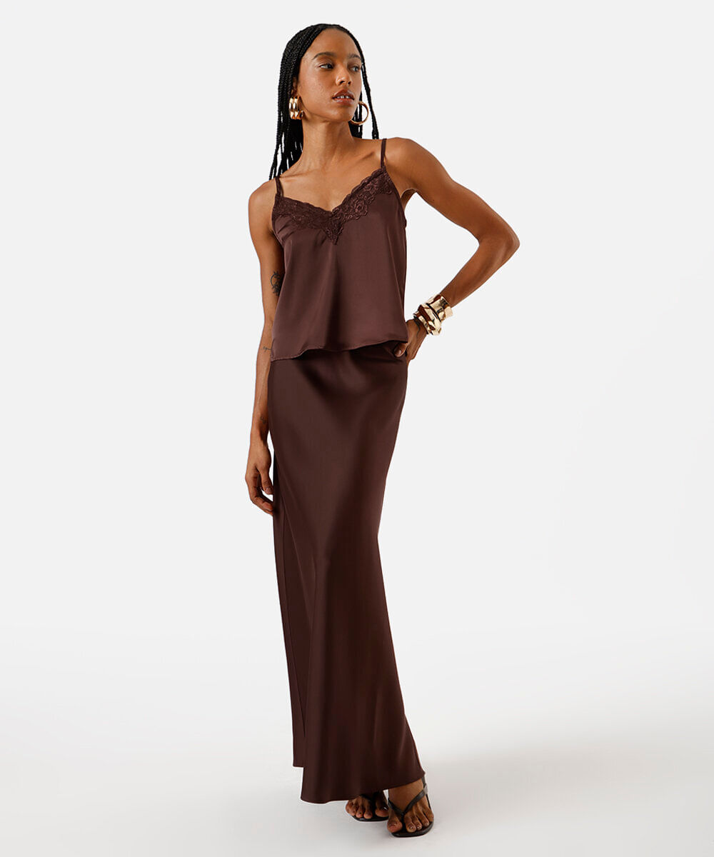 Esta saia longa é a definição de elegância e versatilidade, uma peça indispensável no guarda-roupa feminino. Confeccionada em tecido leve com um toque acetinado, ela proporciona um caimento fluido que acompanha seus movimentos com sofisticação. Seu design atemporal permite criar desde produções clássicas até as mais modernas, adaptando-se facilmente a diversas ocasiões.