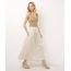 Saia midi feminina confeccionada em tecido com viscose e linho. A peça tem modelagem evasê com caimento rodado e solto ao corpo. O modelo tem cintura alta, cós largo e liso com fechamento posterior por zíper invisível. Possui dois bolsos faca na parte frontal.