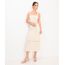 saia midi com linho bordado floral bege