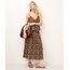 saia midi de algodão animal print bege