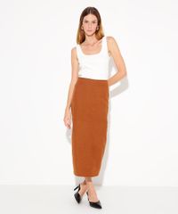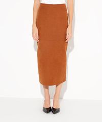 saia midi de suede cintura alta mindset marrom