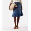 Saia midi feminina confeccionado em jeans. A peça tem a modelagem evasê, com caimento é confortavelmente solto ao corpo. O modelo tem cintura alta, cós com passantes para cinto e fechamento por botão e zíper. Possui três bolsos na parte frontal, dois aplicados na parte posterior e acabamento pespontado nas barras.
