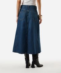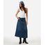 saia midi evasê feminina jeans com recorte azul