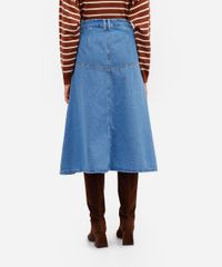saia midi evasê feminina jeans com recortes azul