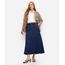 saia midi evasê feminina jeans com recortes azul