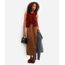 • Modelagem godê com comprimento midi, proporcionando um movimento amplo e elegante.