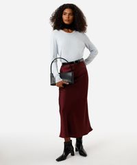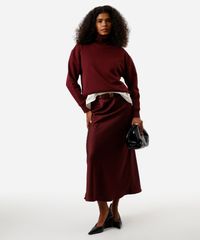 saia midi feminina acetinada vinho
