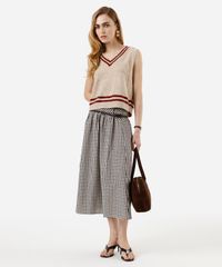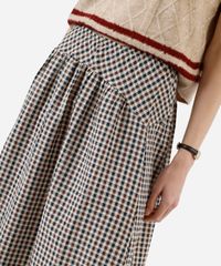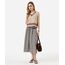 saia midi feminina com recorte xadrez bege