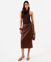 Eleve suas produções com esta saia midi, uma peça que combina sofisticação e brilho na medida certa. Ideal para eventos especiais, seu design elegante com bordado de paetês garante um visual marcante e cheio de glamour. Com um caimento confortável e elegante, esta saia feminina é a escolha perfeita para quem busca um look moderno e festivo.