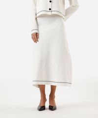 saia midi feminina de tricot com listras off white
