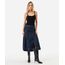 saia midi feminina jeans com fenda azul