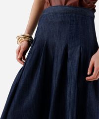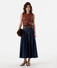 saia midi feminina jeans com pregas azul