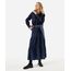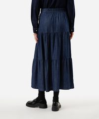saia midi feminina jeans com recortes cós elástico azul