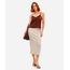 Para um look de trabalho, combine-a com uma camisa de alfaiataria e um scarpin. Se a ocasião for um passeio no fim de semana, aposte em uma regata de malha e sandálias rasteiras para um visual despojado e chique. A versatilidade desta saia midi permite transitar entre o formal e o casual, bastando trocar os acessórios e o calçado.