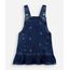 salopete infantil jeans com babado e bordado floral azul