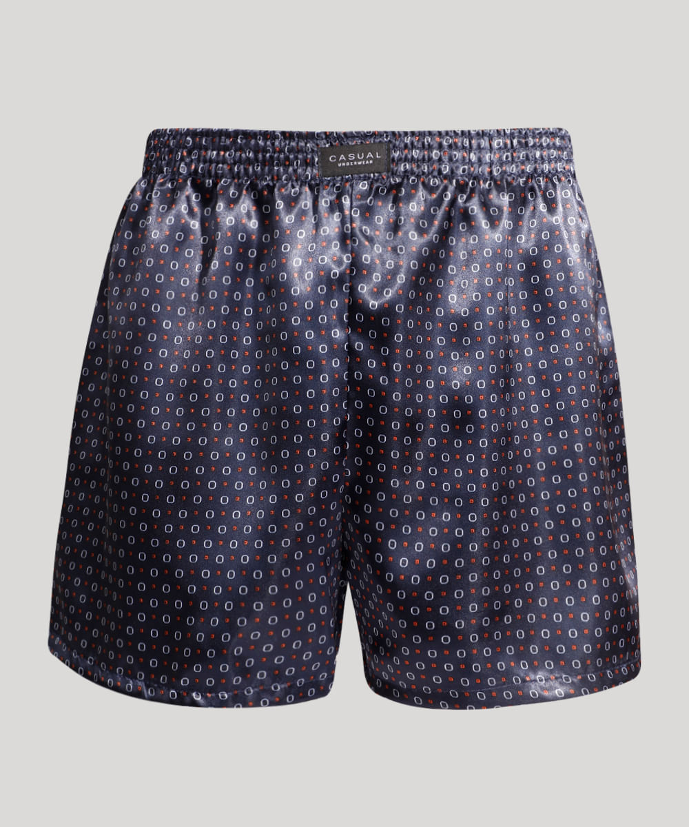 Cueca masculina confeccionada em tecido plano. A modelagem samba canção tem corte reto e caimento solto ao corpo. A peça tem elástico no cós e é estampada com mini print.